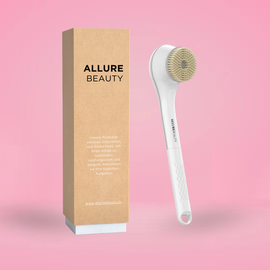 Mit einer Silikon-Körperbürste oder einer elektrischen Körperbürste von AllureBeauty können Sie durch regelmäßiges Trockenbürsten eine verbesserte Wirkung auf den Körper erzielen, die Haut sanft peelen und die Durchblutung fördern, während Sie von der positiven Erfahrung des Trockenbürstens profitieren.